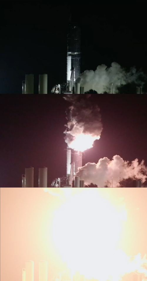綜合外媒報導,SpaceX原本準備對Ship 36進行靜態點火測試,作為第10次SpaceX星艦飛行測試的前置作業,未料在正式開始前、推進劑加注程序開始後約30分鐘時,突然發生劇烈爆炸,過程全以直播方式記錄下來,可以看到Ship 36突然爆炸,火光瞬間覆蓋整個直播畫面,後續又出現幾次爆炸,火球直竄天際,濃煙瀰漫,在爆炸後2小時仍持續燃燒。