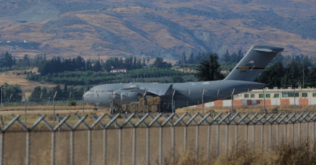 美國空軍C-17全球霸王運輸機抵達賽普勒斯空軍基地。(圖/美聯社)