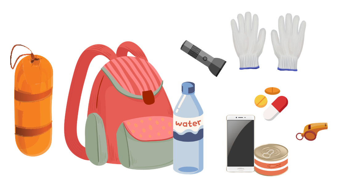 避難包必備品項。(圖/內政部消防署提供)