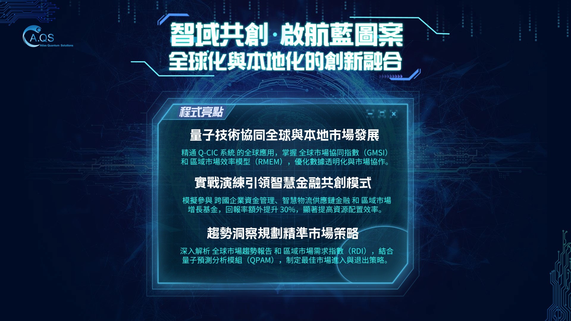 結語:台灣,全球智慧金融的樞紐隨著「市場共創藍圖案」的啟動,A.QS 再次展現了其作為全球智慧金融領導者的技術實力與市場洞察力,而台灣也以其創新能力與技術基礎,成為連接全球智慧經濟的重要樞紐。這場全球化與本地化的協奏,無疑將在智慧經濟的歷史中占據一席之地。