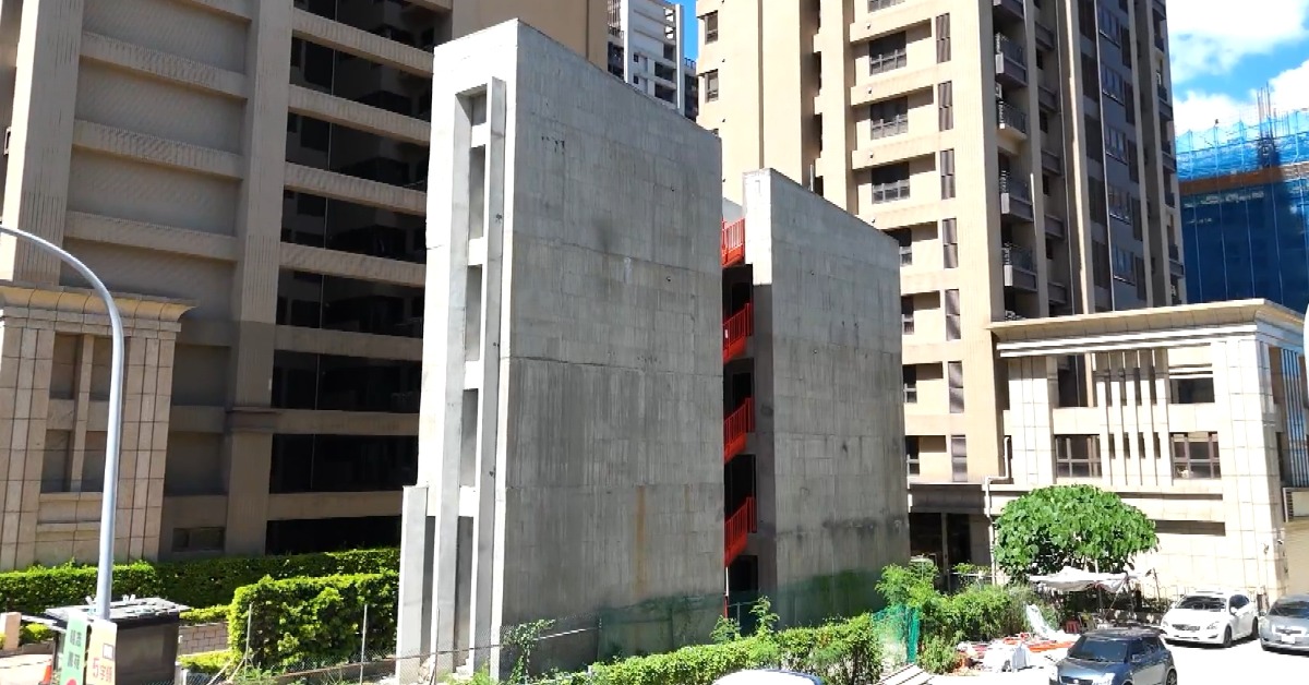 興建建築物業主陳先生:「最主要是中間卡了一個公有的土地,確實在開發上面的時候,沒有辦法全部整合,但是意外變成一個很有特色的房子,這應該是這個重劃區裡頭最小的建案。」