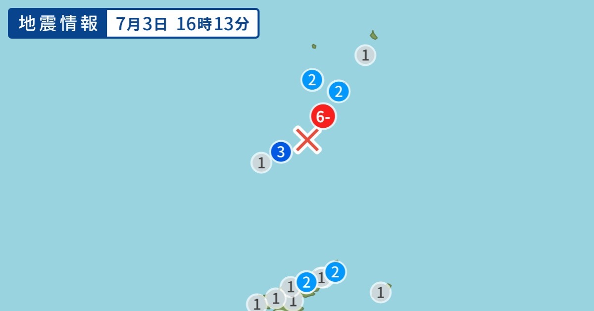 日本鹿兒島近期不斷發生地震,13天內就狂震超過1000次,創下當地史上紀錄。台北時間今(3)日下午3點13分,鹿兒島外海又發生地震,推估規模5.5,鹿兒島十島村的惡石島測得最大震度6弱,是自1919年以來首度觀測到這麼大地震,驚動日本政府跟氣象廳召開緊急記者會,呼籲民眾提防。日本也把設在首相官邸的聯絡辦公室,升級為官邸緊急應變室,積極應對。