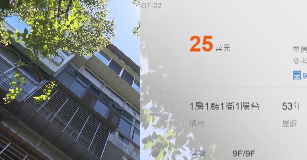 蟲鳴鳥叫,環境清幽,這裡是新北市新店區一處社區,這一棟屋齡53年的電梯大樓,點開購屋網一看,什麼?屋齡53年的8坪套房,1房1廳1衛1陽台,竟然只要價25萬元。