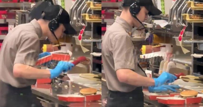 剛跟顧客吵架!速食店員工「朝漢堡吐口水」畫面曝 網傻眼