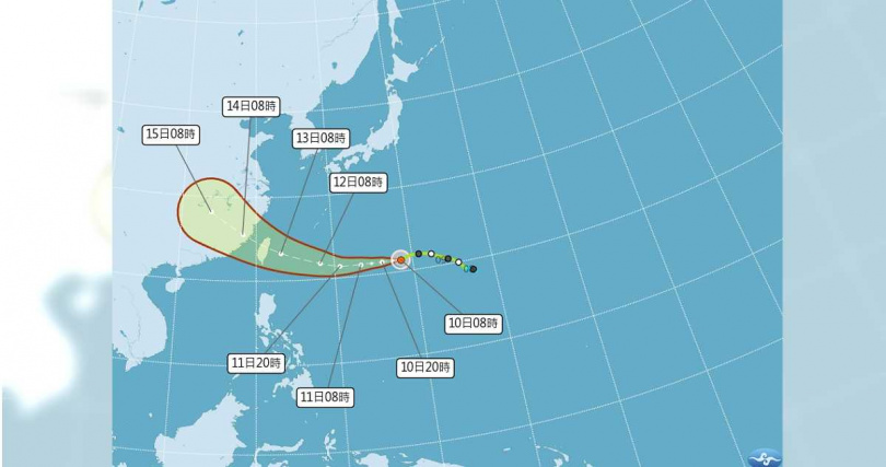 今年第11號颱風「楊柳」來勢洶洶,中央氣象署路徑潛勢預報圖顯示將是穿心颱。(示意圖/CTWANT)