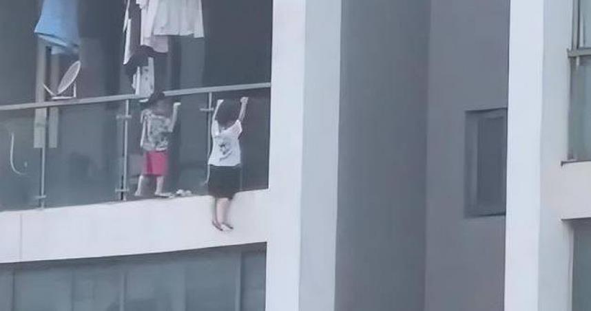 綜合陸媒報導,現場影片顯示,2名年幼孩童攀爬至陽台外側,毫無防護措施;更可怕的是,其中1名孩童更是整個身體懸空,僅靠雙手抓住玻璃支撐身體,稍有不慎就可能發生墜樓意外。所幸對面樓層的鄰居即時發現,第一時間聯絡社區管理員,成功避免悲劇發生。