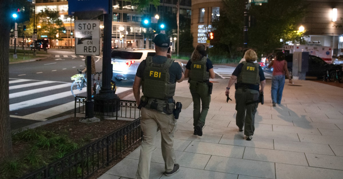 聯邦調查局特工在華盛頓州霧谷社區喬治華盛頓醫院附近巡邏。 (圖/美聯社)