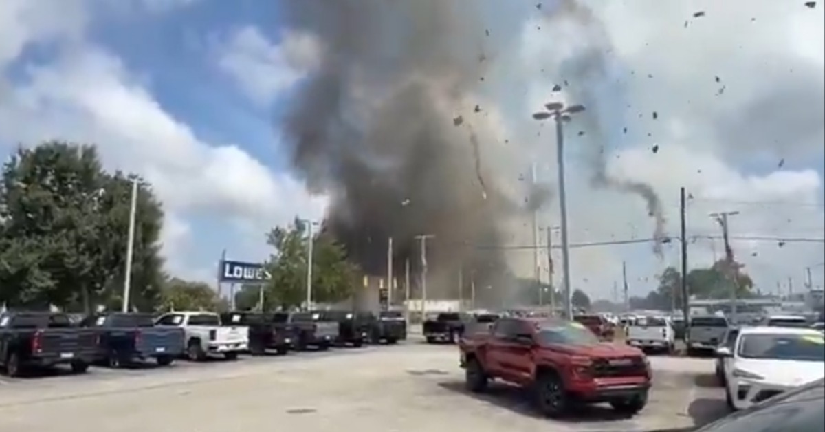 整棟建築物瞬間被強烈衝擊波撕裂,屋頂和牆壁被炸飛,還伴隨著火焰和濃煙。(圖/翻攝自X@CoffindafferFBI)