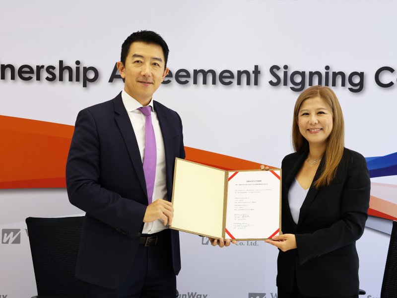 晨暉生技董事長盛保熙(左)與望德斯國際董事長陳旭文。(晨暉提供)