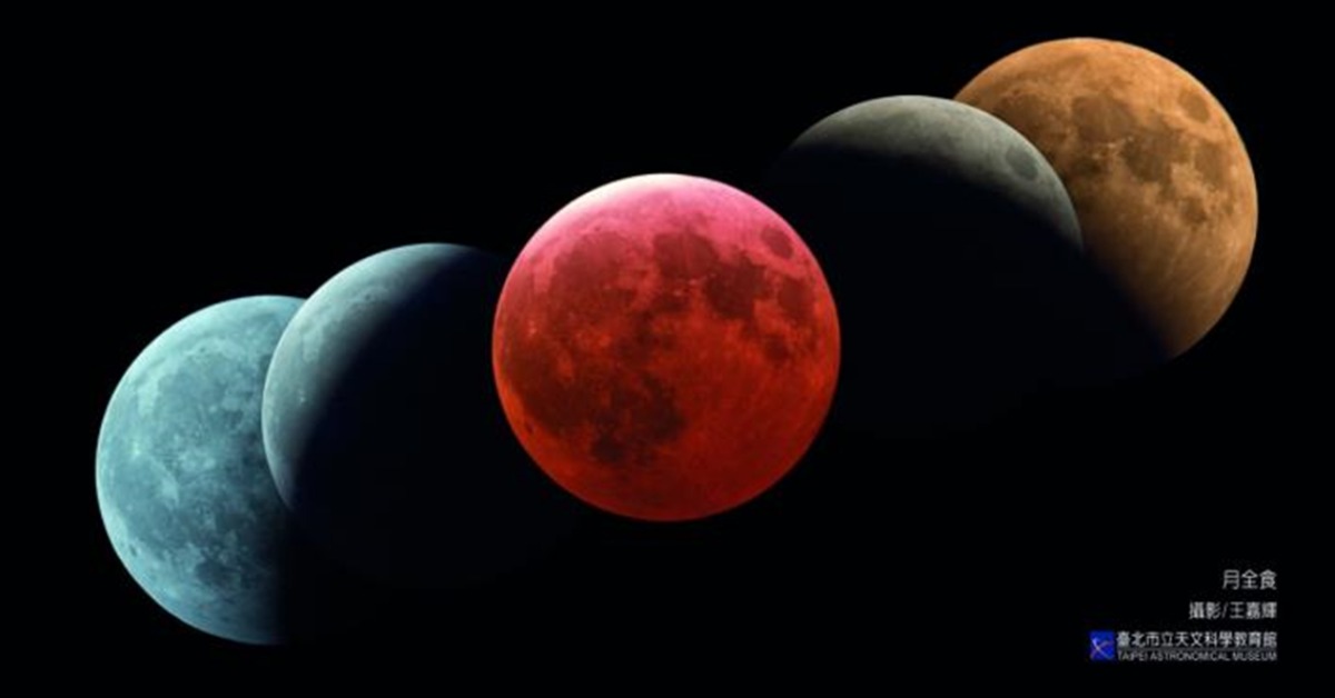 南瀛天文館說明,當月球、地球、太陽運行至剛好對齊,且月球落入地球的陰影中時,此時不僅僅會看到滿月逐漸慢慢缺一角,在全食階段還會變成紅色的「血月」,非常值得觀賞。