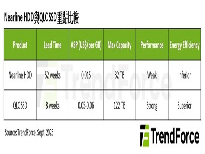 TrendForce:Inference AI需求導致Nearline HDD嚴重缺貨 2026年QLC SSD出貨有望趁勢爆發。(TrendForce提供)