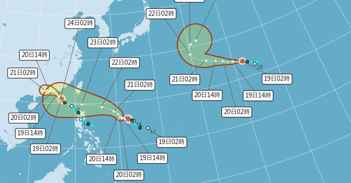 接近時將會是中度颱風的等級,暴風半徑也偏大,下週一至週三對臺灣天氣有一定程度影響,請特別留意後續最新預報;第17號颱風米塔持續朝廣東前進,對臺灣天氣無直接影響;第19號颱風浣熊離臺灣及日本都很遙遠,未來皆在海上活動,對臺灣天氣無影響。