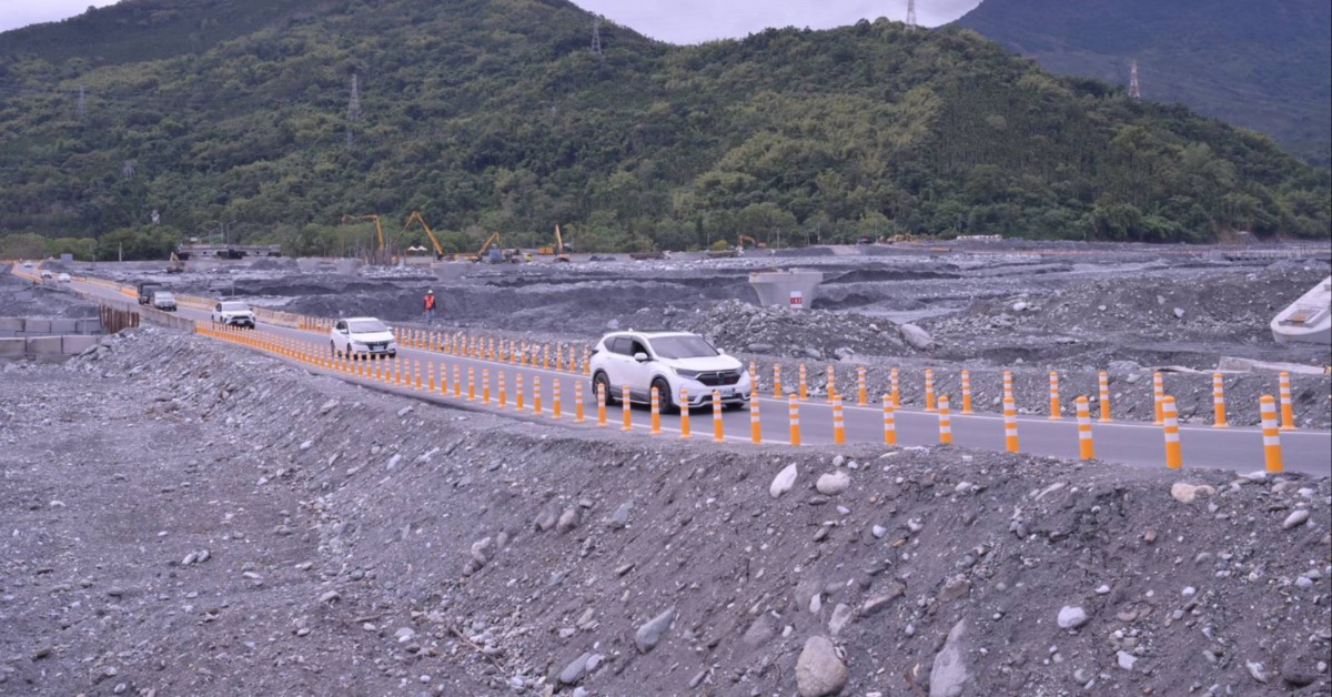 花蓮縣光復鄉「馬太鞍溪橋重建」及「馬太鞍溪上下游疏濬復建」工程進度。(圖/花蓮縣政府提供)
