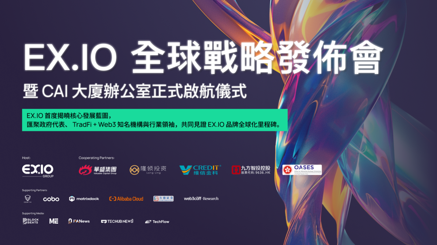 EXIO Group Limited(EX.IO)於 CAI 大廈舉行開幕典禮,正式發布全球戰略升級,並宣布進駐這一 Web3 與 AI 創新生態樞紐。此一里程碑事件匯聚創始團隊、投資人及行業夥伴,標誌著 EX.IO 從合規建設階段邁向全球化擴張,彰顯香港在數字資產領域的領先地位。