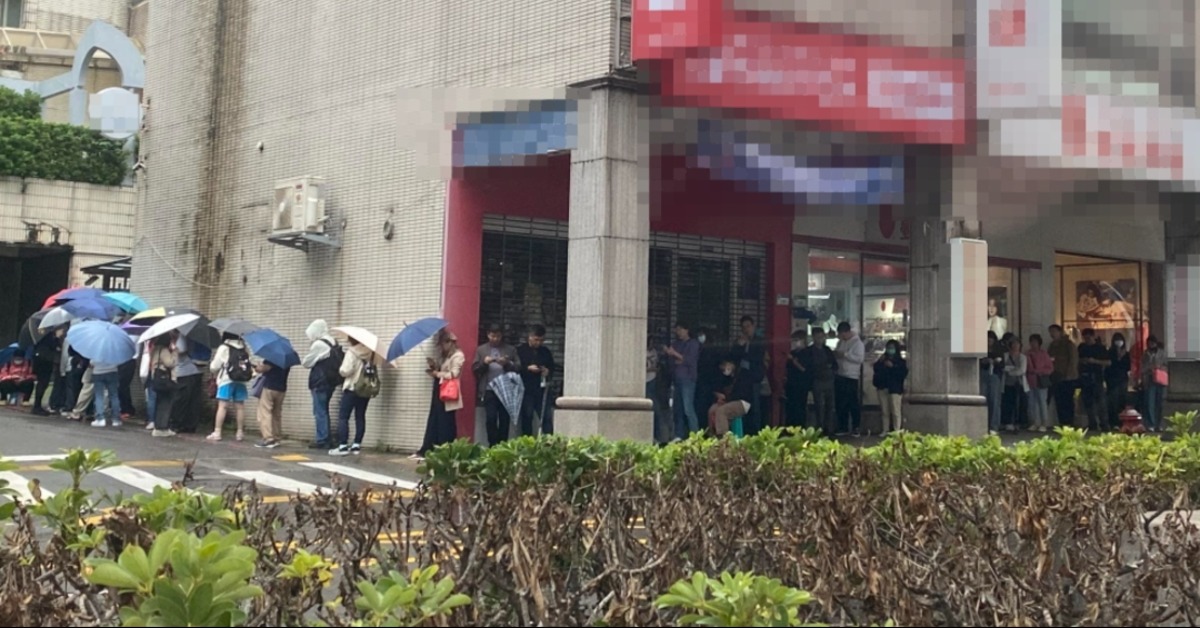一名網友在臉書社團「我是東湖人(社團版)」發文詢問,「請問這是排什麼…」,並曬出一張照片。從畫面中可以看到長長的人潮,有人撐著傘,有人戴著帽子,一路排到騎樓,在隊伍前方,甚至還有民眾帶小椅子坐著排,即使天公不作美,也抵擋不了大家排隊的決心。