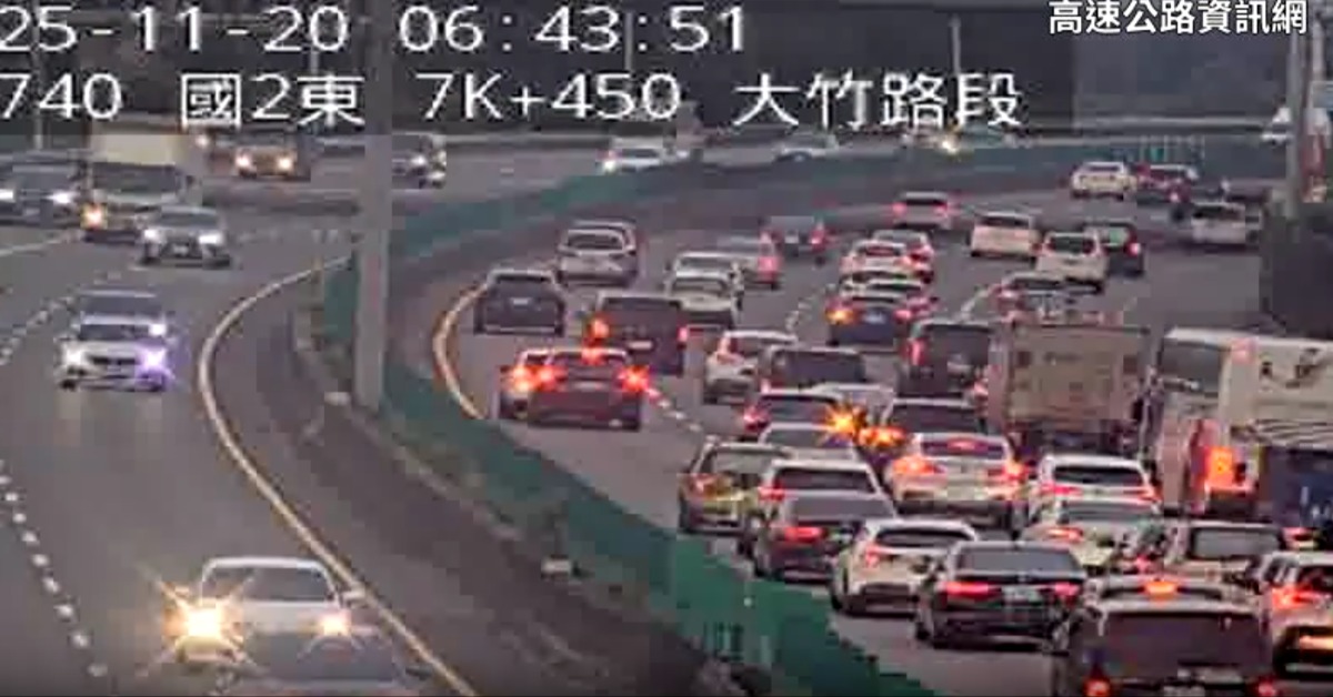 國道2號西向7公里處大竹-機場系統今(20日)清晨06:38發生車禍事故,發生嚴重回堵,事故路段時速只剩48公里,上班或出國趕班機的民眾,請多加留意!