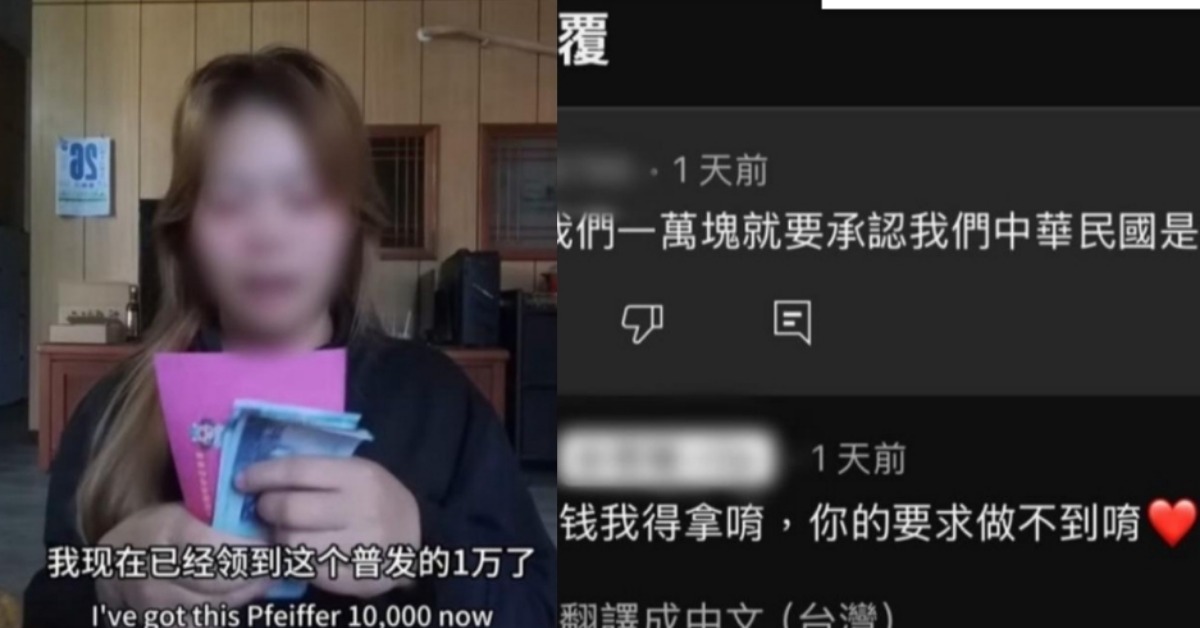 普發1萬元除了台灣本國民眾,符合資格外籍人士與國人配偶也可領取。但一名來自四川、來台約4個月的中籍配偶 YouTuber「若瑜」,卻表示要領錢,但不承認「中華民國是國家」掀起網友熱議。