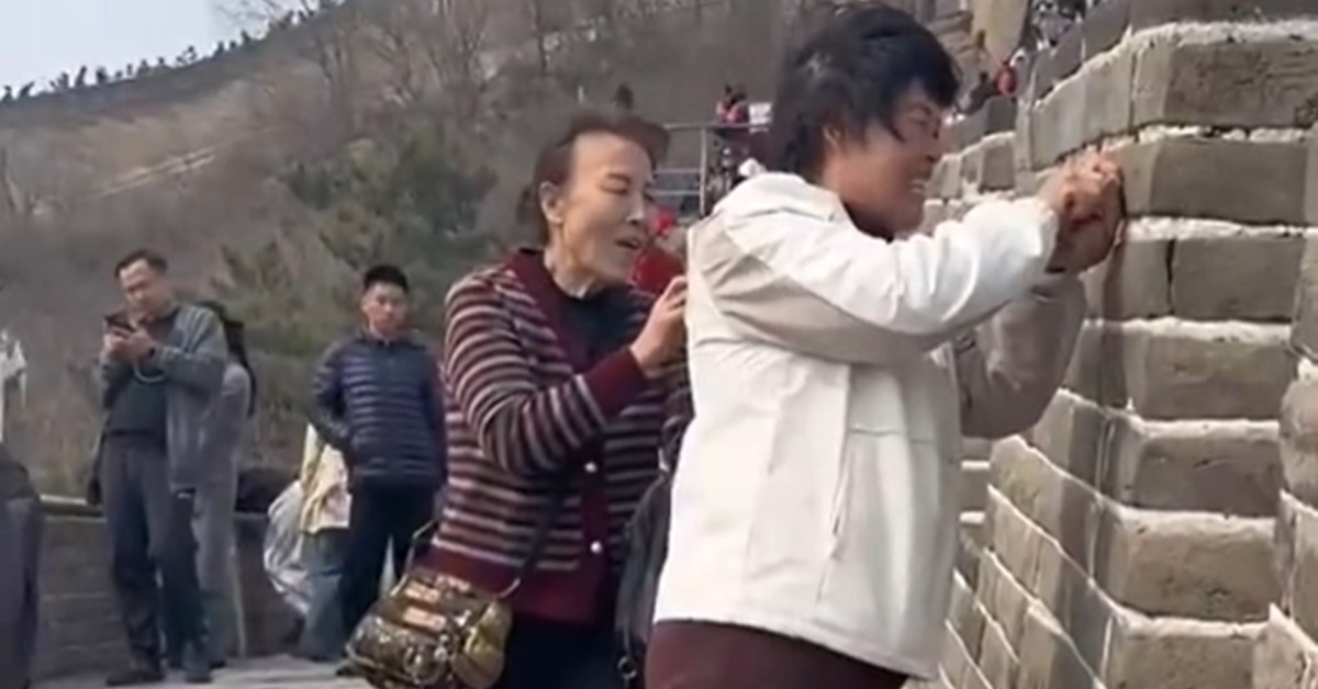 兩位中國大媽登上八達嶺長城,一時興奮,就在世界遺產的磚牆上刻上自己的名字,留下「張麗」、「蕊霞」的大字,誇張行徑被一旁的遊客錄影存證,下場是進警局,警察循線逮捕兩名大媽,刑事拘留,也讓她們在警局待幾天做個留念。